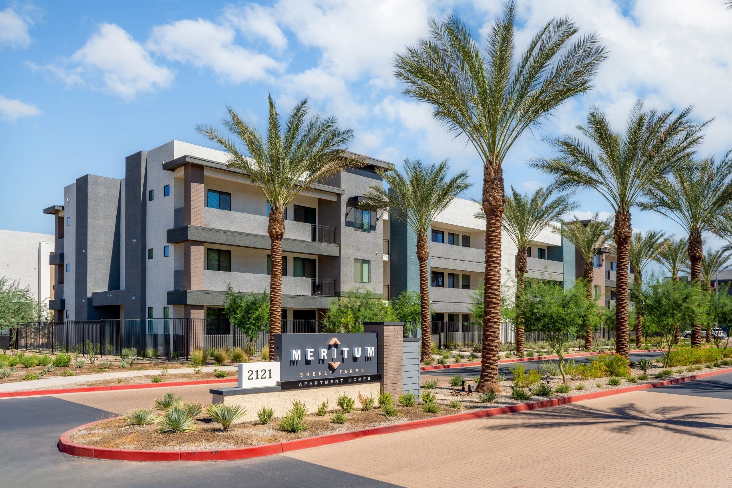 Welcome to Meritum Sheely Farms, a brand-new apartment community in Phoenix, Arizona. Located off North 99th Avenue and McDowell, this modern community will feature 3 resort-style pools, a putting green course, and 24-hour two-story fitness center with yoga room. Meritum Sheely Farms will provide residents with quick access to the Loop 101 and I10 freeways, as well as nearby employers such as Amazon, Banner Estrella Medical Center, and more. Residents of Meritum Sheely Farms can expect to stay connected with fun community events including happy hour, holiday celebrations, pool parties, and more hosted in our two-story resident clubhouse. With IDM Companies’ professional onsite management team, service is always at your fingertips. Join us for the ultimate apartment living experience designed with you in mind. Welcome home to Meritum Sheely Farms.