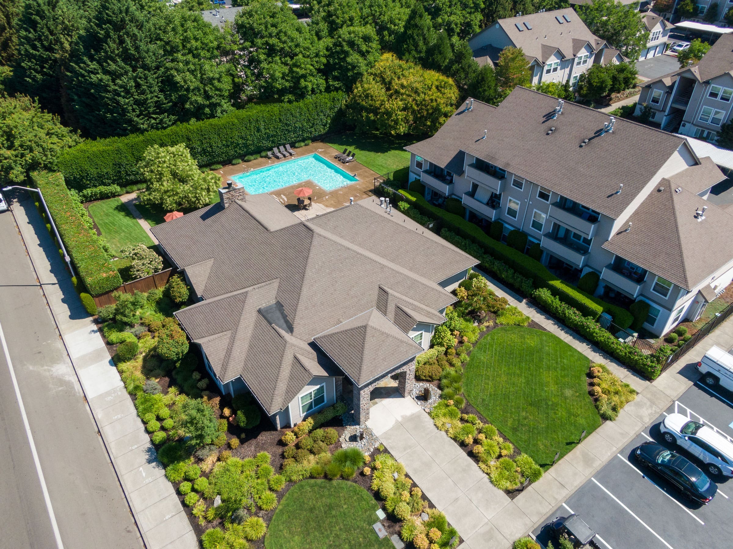 Most homes include extra storage spaces, large patios or decks, and in-home washers and dryers. All kitchens are fully equipped with refrigerator, microwave oven, dishwasher, and designer cabinets. Nine-foot ceilings, fireplaces, enclosed garages, cable TV, and high speed Internet access are also available in select homes.
